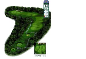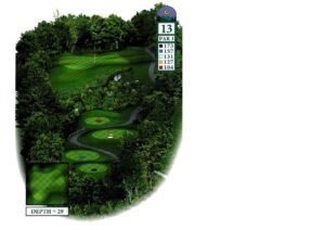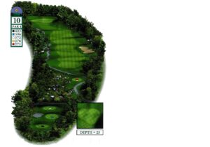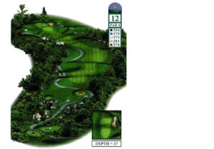 A straight but not long drive is required here. Long hitters can reach the ravine off the tee and should consider laying up with a fairway wood or long iron. Consider the green elevation as on #10 when making your approach club selection.
