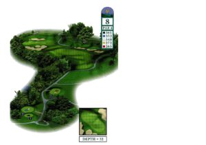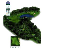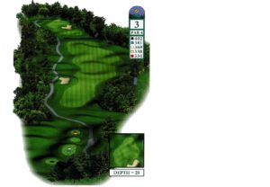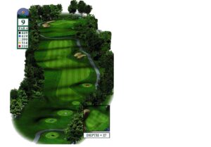 Long hitters can reach this par-5, 466-yard green in two, but the drive must carry the right knoll. Anything hit to the middle or the left may roll into the water hazard over the bank. A 3-wood off the tee is a safe choice with an iron as the second shot and a short iron to the green. This hole looks easier than it is. It can come out and bite you.
