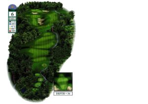 On this par-3, 204-yard hole, players should look for one club less than its yardage. This is a great hole with no gimmicks – all its hazards are clearly visible. Winds tend to blow from the right to the left here and can be a factor. Check pin location when making your club selections as this is a fairly long green.